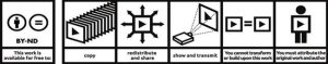 The most common open licences for copyrighted material have been developed by Creative Commons. There are 6 Creative Commons licences, and each have slightly different, but standardised permissions. See the image below that illustrates the different licences and the range of permissions;
